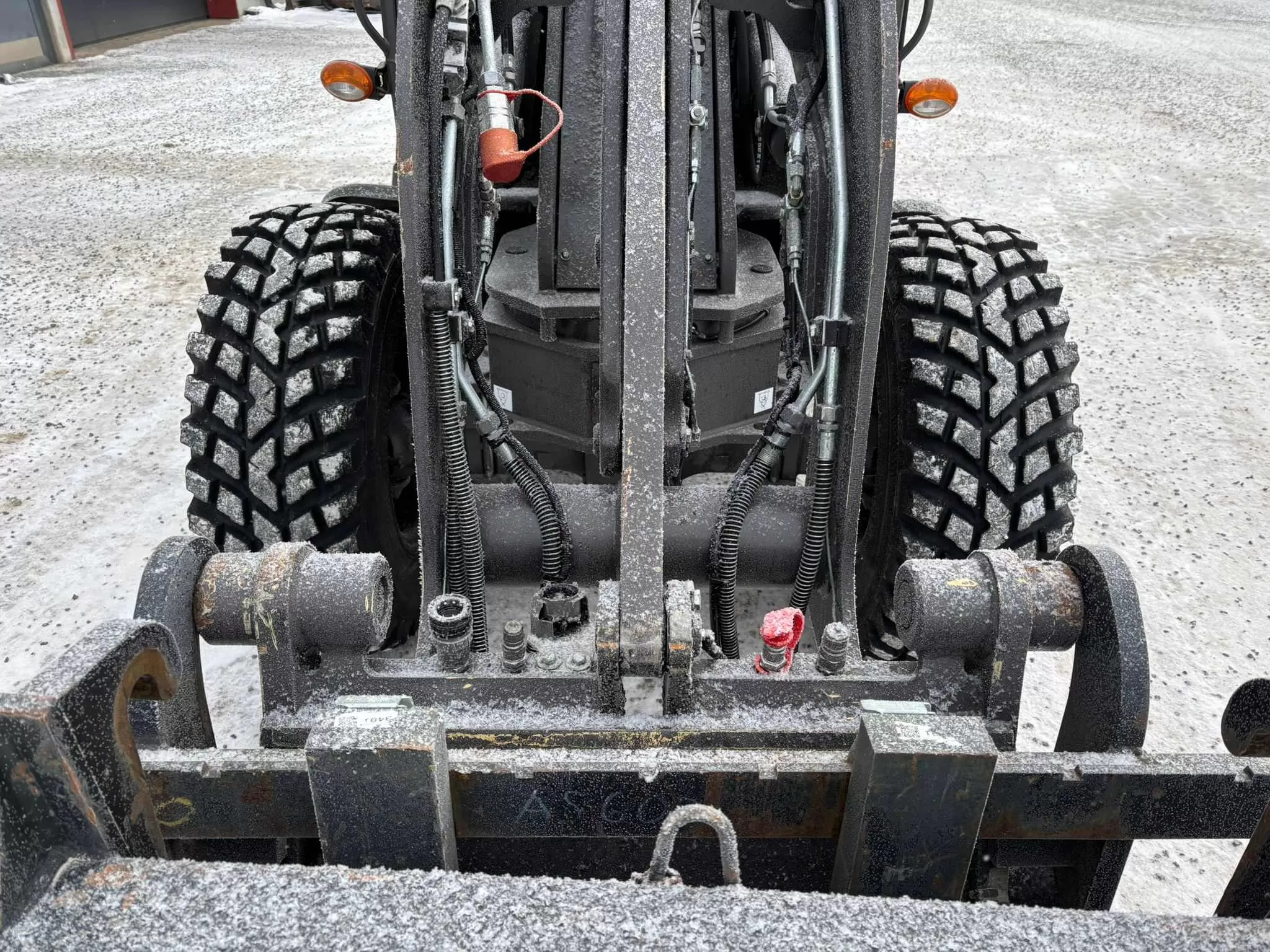 Kaatokuorma etukuormain 90° käännettynä ja renkaat max. käännöllä 2250 kg